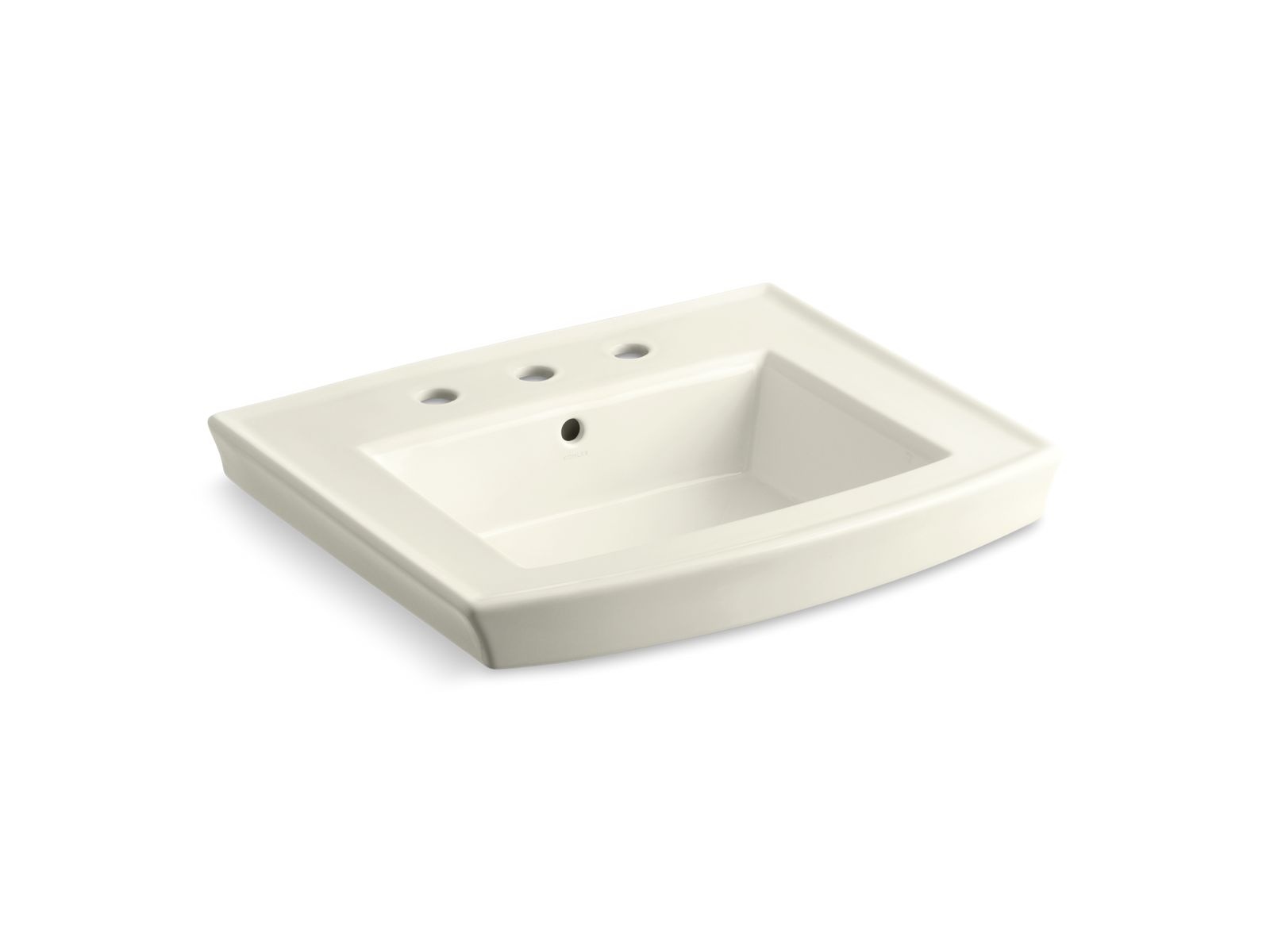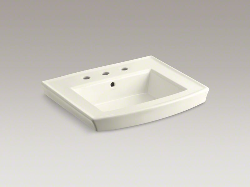 Kohler® Bathroom Sink Basin, Archer®, Rectangular, 16-1/4 in L x 11-15/16 in W Bowl, 1-3/4 in Drain Opening, 3 Faucet Holes, 4 in Faucet Hole Spacing, 1 Basin, 24 in W x 20-1/2 in D x 7-7/8 in H, Wall Mount, Vitreous China, Biscuit
