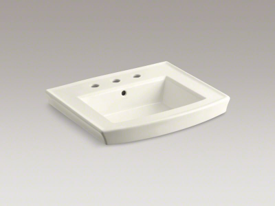 Kohler® 2358-8-96 Archer® Bathroom Sink Basin With Overflow Drain, Rectangular Shape, 4 in Faucet Hole Spacing, 24 in W x 20-1/2 in D x 7-7/8 in H, Wall Mount, Vitreous China, Biscuit