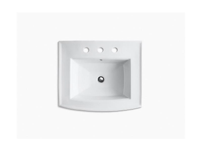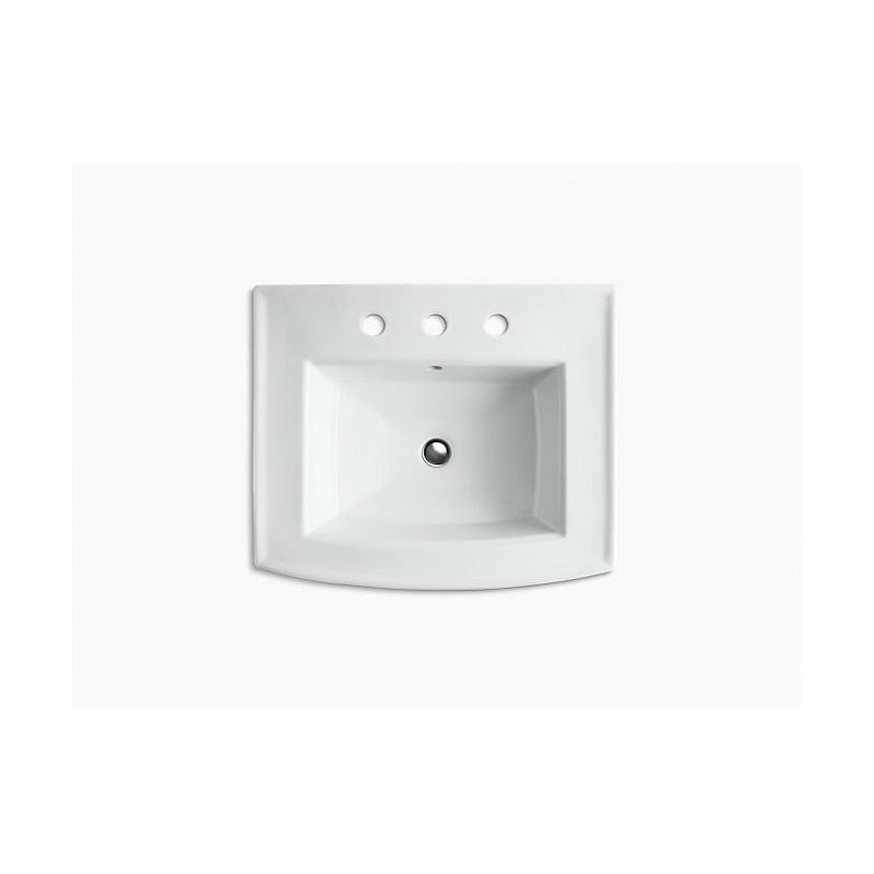 Kohler® 2359-8-0 Archer® Bathroom Sink Basin With Overflow Drain, Rectangular Shape, 4 in Faucet Hole Spacing, 23-15/16 in W x 20-7/16 in D x 35-1/4 in H, Wall Mount, Vitreous China, White