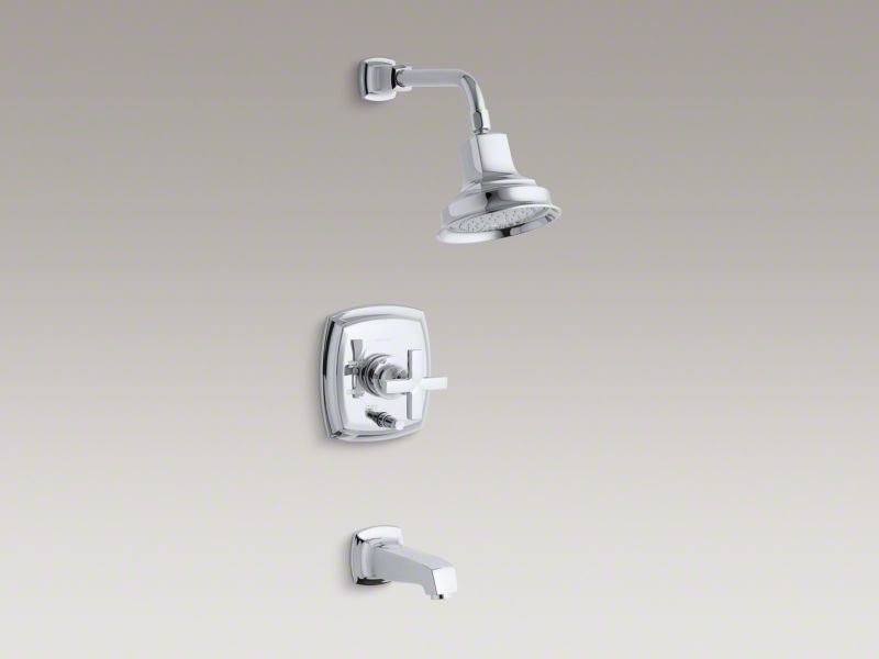 Kohler T16233-3-CP Rite-Temp(R) Bath and Shower Faucet, Cross Handle