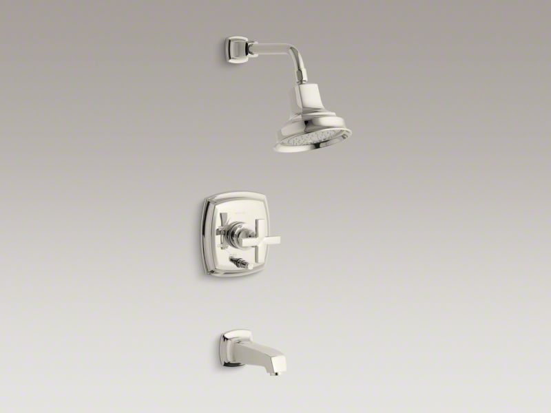 Kohler T16233-3-SN Rite-Temp(R) Bath and Shower Faucet, Cross Handle