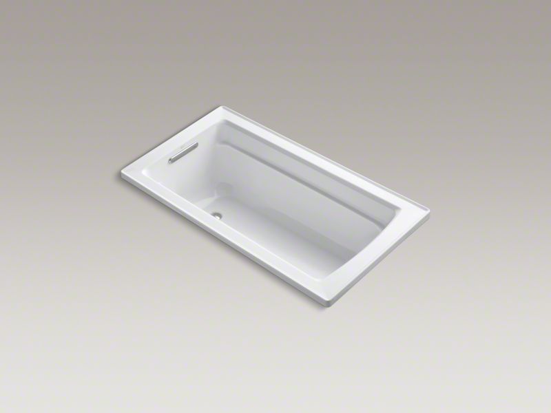 Kohler® Bathtub, Archer® Collection, Soaking Bath Therapy, Rectangle Shape, 60 in Length, 32 in Width, 19 in Height, 15 in Tub Depth, 58 gal Water, End Drain Location, 1-1/2 in Drain, Drop-In Mounting, Acrylic, White
