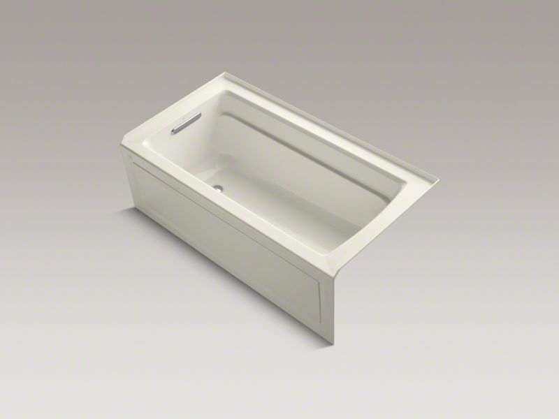 Kohler® 1123-LA-96 Archer® Bathtub With Integral Apron and Integral Flange, Soaking Hydrotherapy, Rectangle Shape, 60 in L x 32 in W, Left Drain, Biscuit