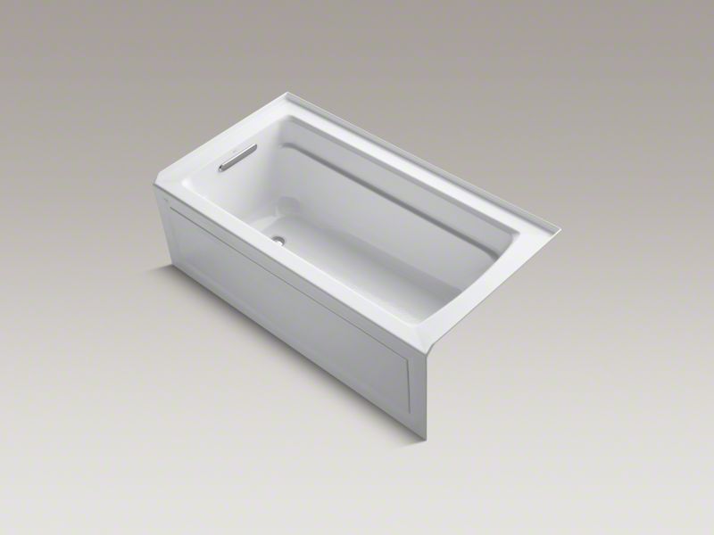 Kohler® 1123-LA-0 Archer® Bathtub With Integral Apron and Integral Flange, Soaking Hydrotherapy, Rectangle Shape, 60 in L x 32 in W, Left Drain, White
