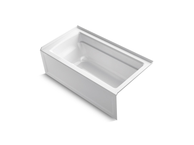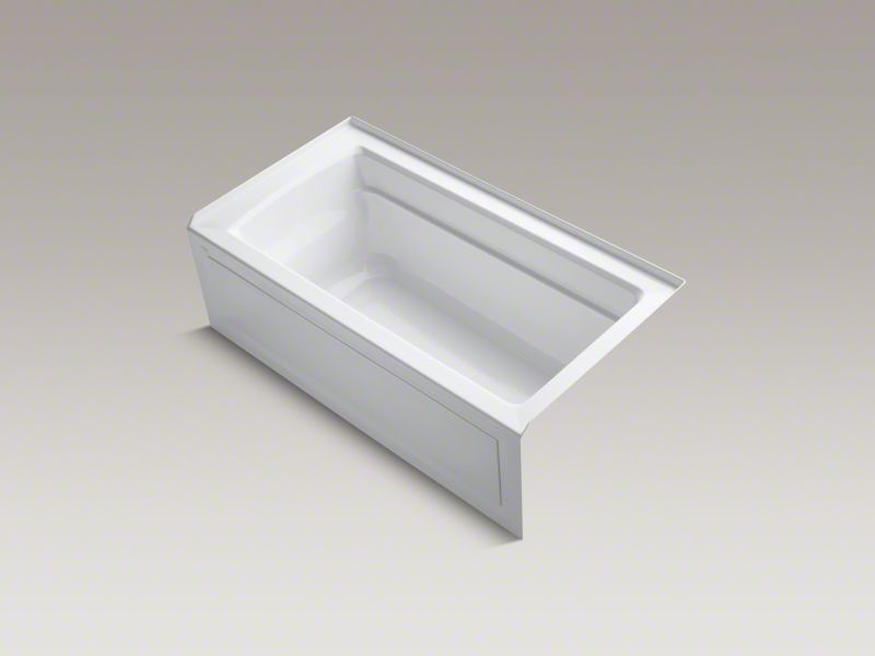 Kohler® 1123-RA-0 Archer® Bathtub With Integral Apron and Integral Flange, Soaking Hydrotherapy, Rectangle Shape, 60 in L x 32 in W, Right Drain, White