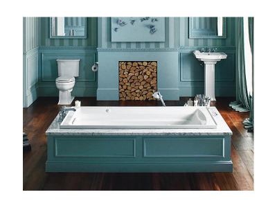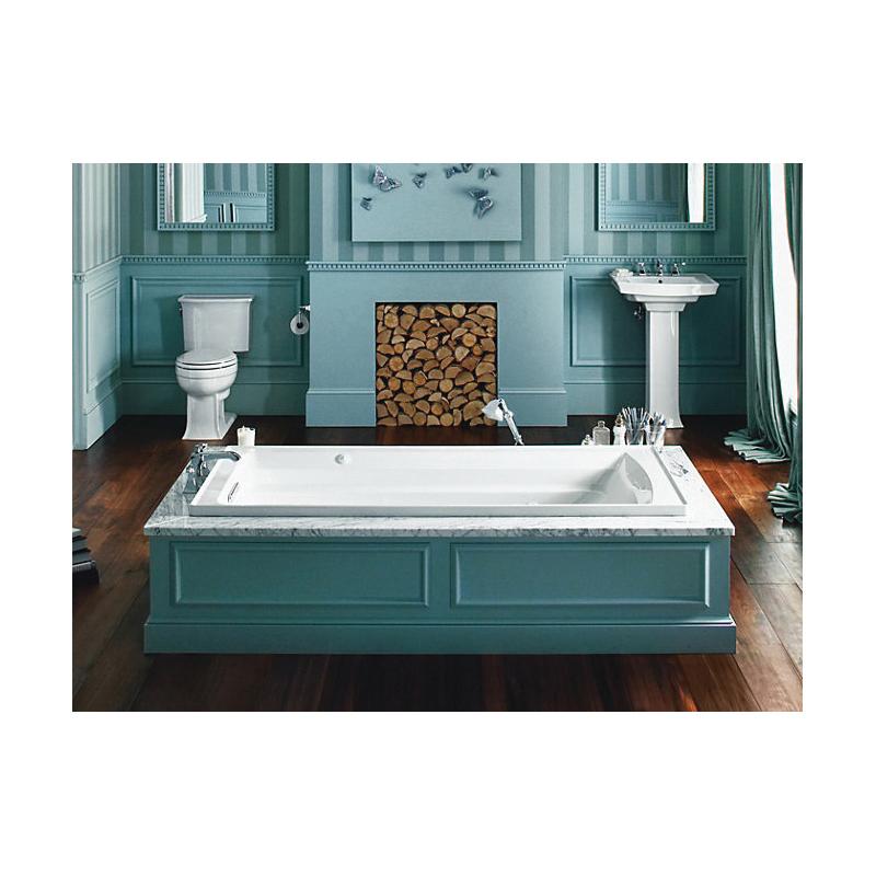Taking its design cues from traditional Craftsman furniture, the KOHLER® Archer line of baths reveals beveled edges and curved bases for a clean, sophisticated style. This 72" x 36" rectangular drop-in bath offers a low step-over height while allowing for deep, comfortable soaking. Whirlpool jets relax away the day's tension.