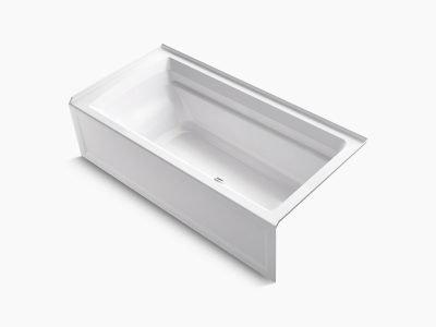 Kohler® 1125-RA-0 Archer® Bathtub With Integral Apron and Integral Flange, Soaking Hydrotherapy, Rectangle Shape, 72 in L x 36 in W, Right Drain, White
