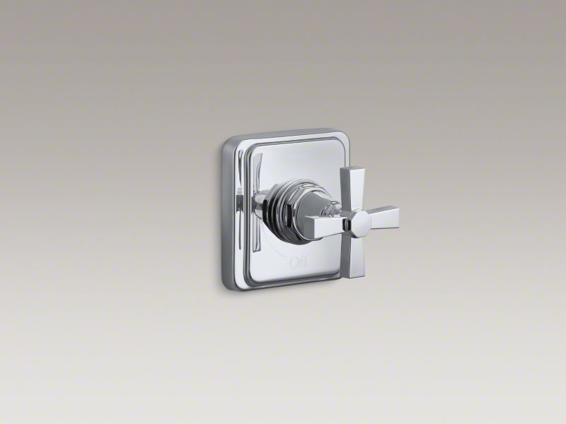 With its smooth, clean silhouette, Pinstripe Pure evokes a sense of relaxed luxury and vintage 1930s American style. This valve trim with bold cross handle is easy to operate, and features soft, clean edges for a bold accent in the shower. Pair this trim with a MasterShower(R) volume control valve for precise water flow.