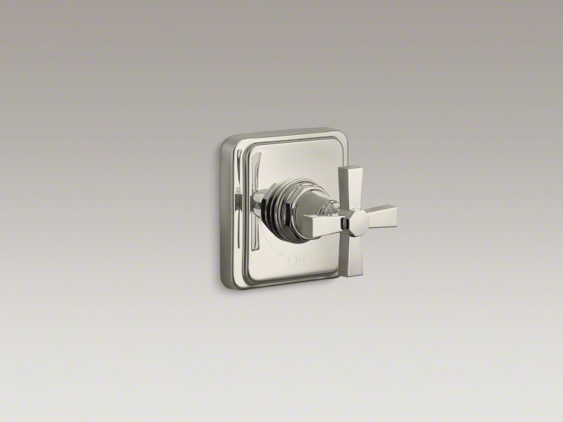 Kohler® Volume Control Valve Trim, Series: K-T13174-3A, Pinstripe®, 1 Handles, Metal Pure Design Cross, 4-1/2 in W x 3-7/8 in D Trim, Vibrant® Polished Nickel