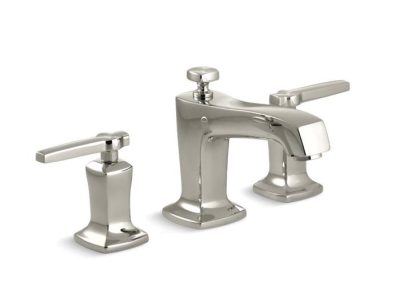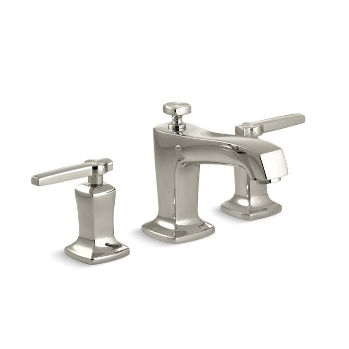 Kohler® Widespread Bathroom Sink Faucet, Margaux®, 1.2 gpm, 8 to 16 in Center Distance, Stationary Spout, 5-3/8 in Spout Reach, 3-1/8 in Spout Height, Lever, 2 Handles, Pop-Up Drain, 3 Faucet Holes, 1/2-14, NPSM, 1-3/8 in Maximum Deck Thickness, Ceramic Disc Valve/Cartridge, 5-3/8 in L x 8 in W x 5-1/4 in H, Solid Brass, Vibrant® Polished Nickel