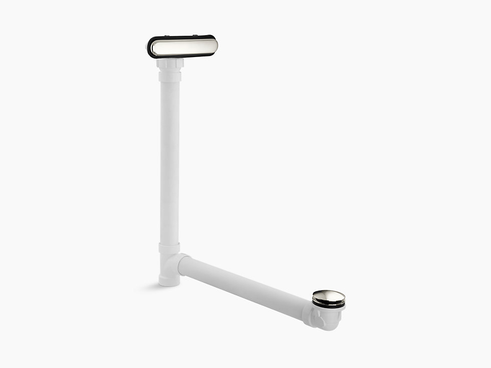 Kohler® Bath Drain, Slotted Overflow, 23-1/16 in Height, 8-3/16 in Width, 18 in D, PVC, For Use with: Elevance™, Archer™, Underscore®, Reve™ and Parity™ Baths and Whirlpool, Vibrant® Polished Nickel
