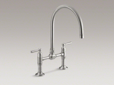 HiRise faucets combine the concepts of vintage plumbing with the strength and beauty of stainless steel to create truly sophisticated designs. This deck-mount bridge faucet reintroduces a classic design that suits urban lofts as well as traditional kitchens. The high clearance of this gooseneck swing spout allows you to easily fit larger dishes underneath for cleaning, and its fully rotating design makes it convenient for prep and cleanup tasks. This faucet is outfitted with easy-to-install and leak-free UltraGlide(TM) valves for excellent performance.