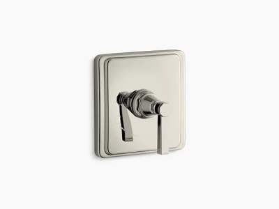 With its smooth, clean silhouette, Pinstripe Pure evokes a sense of relaxed luxury and vintage 1930s American style. This valve trim with bold lever handle is easy to operate, and features soft, clean edges for a bold accent in the shower. Pair this trim with a MasterShower(R) thermostatic valve for precise water temperature.
