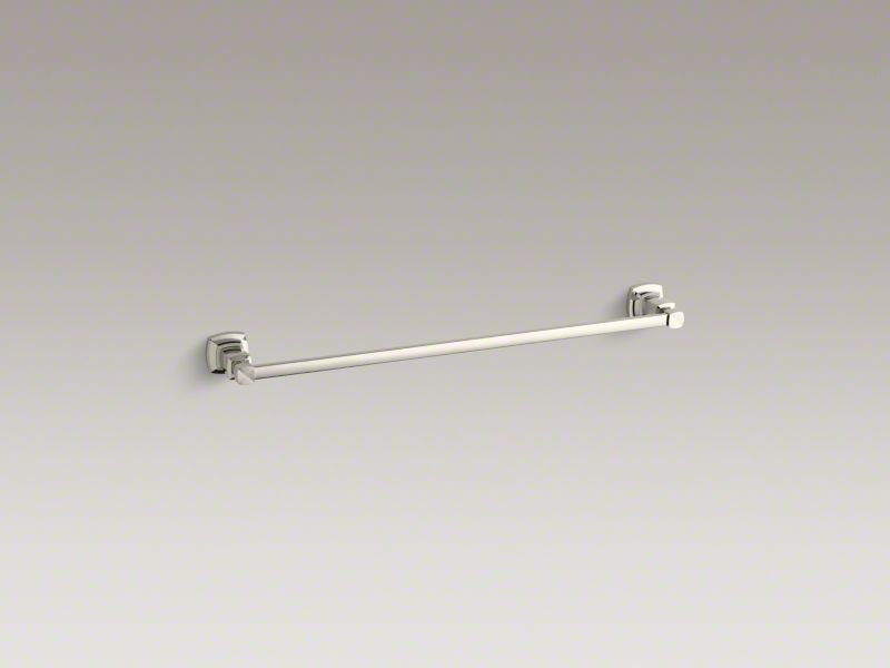 Kohler® Towel Bar, Single, Margaux®, 24 in Bar Length, 26-1/8 in Overall Length, 3-1/2 in Overall Depth, 2-1/8 in Overall Height, 2-1/8 in Base, Metal, Vibrant® Polished Nickel
