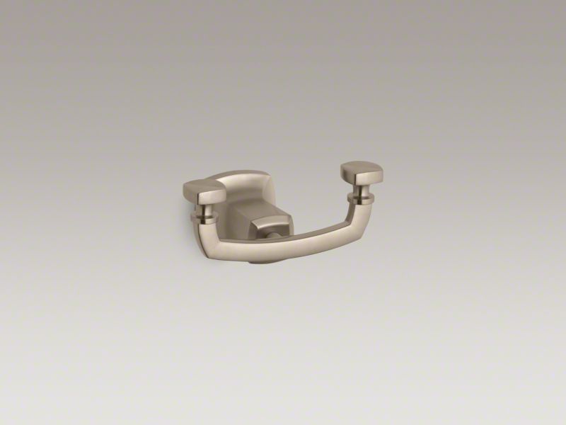 Kohler® Robe Hook, Margaux®, 2 Hooks, 5-1/8 in Overall Width, 3-1/2 in Overall Depth, 3 in Overall Height, Wall Mount, Metal, Vibrant® Brushed Bronze