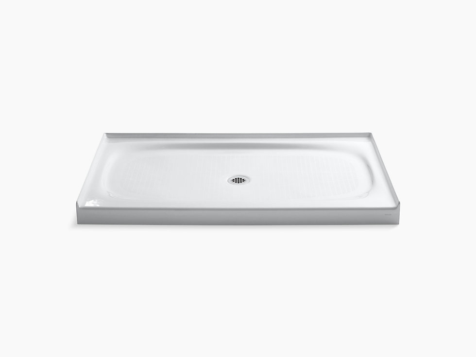 Kohler® 9055-0 Salient® Single Threshold Shower Base, White, Center Drain, 60 in L x 36 in W x 3-15/16 in D