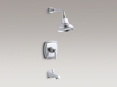 Blending traditional design with contemporary accents, Margaux faucets and accessories are an ideal complement to any modern bathroom. This bath and shower trim embodies Margaux's minimalist style with its fluid lines and sleek lever handle. The spout also features an integrated diverter rod, which redirects water to the showerhead. Pair this trim with a Rite-Temp(R) pressure-balancing valve, which maintains your desired water temperature during pressure fluctuations.