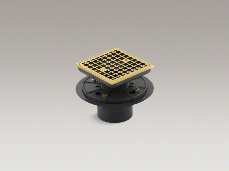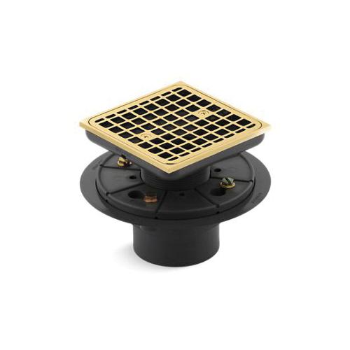 Kohler® Shower Drain, Square, Series: 9136, ClearFlo™, PVC/Brass Drain, Solid Brass Grid, Vibrant® Polished Brass, Tile-In Mount, 4-9/16 in Dia x 4-1/8 in H