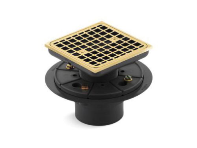 Kohler® 9136-PB ClearFlo™ Square Shower Drain, Solid Brass Grid, PVC/Brass Drain
