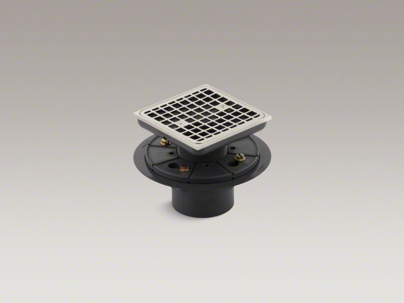 Kohler® 9136-SN ClearFlo™ Square Shower Drain, Solid Brass Grid, PVC/Brass Drain