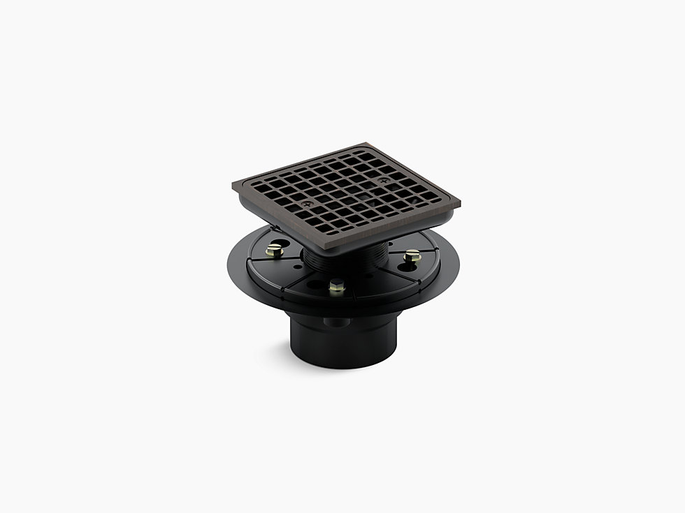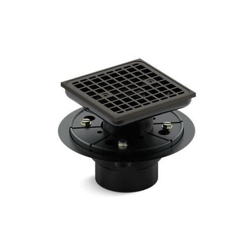 Kohler® Shower Drain, Square, Series: 9136, ClearFlo™, PVC/Brass Drain, Solid Brass Grid, Oil Rubbed Bronze, Tile-In Mount, 4-9/16 in Dia x 4-1/8 in H