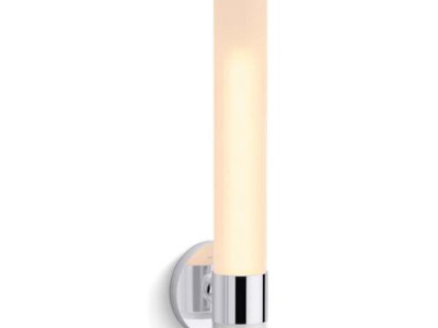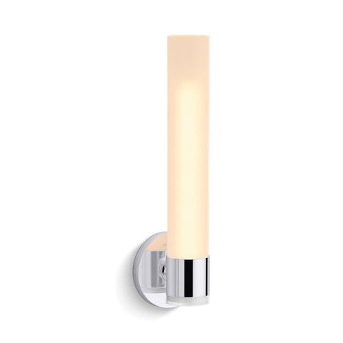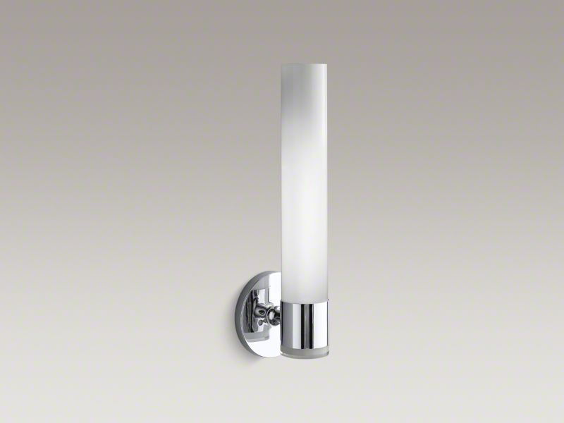 Kohler® Light Sconce, Series: 32375-SC01, 120 V AC, 60 W Lamp, E26 Medium Lamp Base, 1 Lamp, 100000 hr Average Life, Clear Frosted Glass Shade, Wall Mounting, Steel Housing Material, Polished Chrome Housing Finish, 4 in W x 16-7/8 in H Dimensions