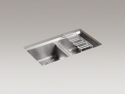 Kohler 3672-NA 8 Degree TM 33" x 18" x 10-3/16" Under-mount Large/Medium Double-bowl Kitchen Sink