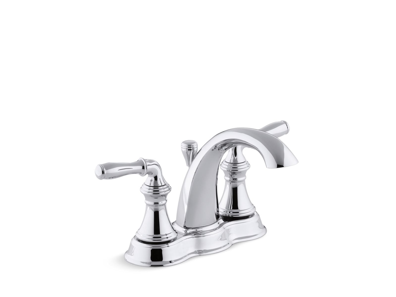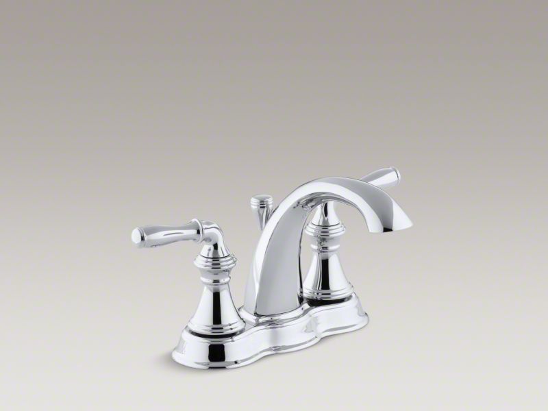 Kohler® Centerset Bathroom Sink Faucet, Devonshire®, 1.2 gpm, 4 in Center Distance, High-Arc Spout, 4-3/4 in Spout Reach, 4 in Spout Height, Lever, 2 Handles, Pop-Up Drain, 3 Faucet Holes, 1-1/2 in Maximum Deck Thickness, Deck Mount, Ceramic Disc Valve/Cartridge, 6-3/8 in W x 5-1/8 in H, Premium Metal, Polished Chrome