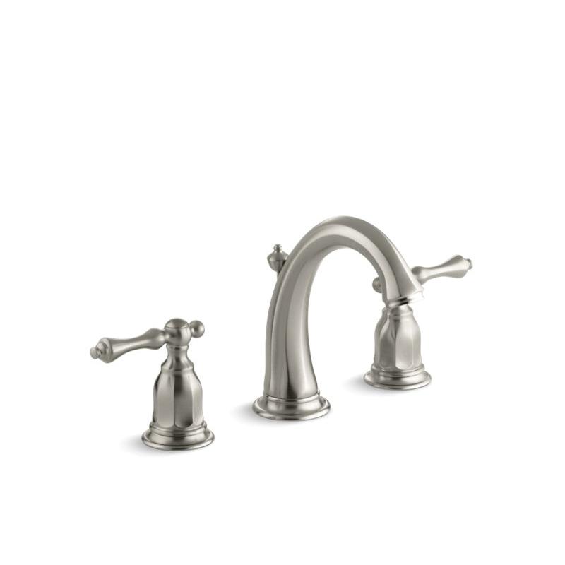 Kohler® Widespread Bathroom Sink Faucet, Kelston®, 1.2 gpm, 8 to 16 in Center Distance, Curved Spout, 4-1/2 in Spout Reach, 3-7/8 in Spout Height, Lever Handle, 2 Handles, Pop-Up Drain, 3 Faucet Holes, 1-1/2 in Maximum Deck Thickness, Ceramic Disc, 6 in H, Solid Brass, Vibrant® Brushed Nickel