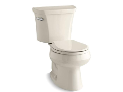 Kohler® Toilet, 2-Piece, Wellworth®, 1.28 gpf Flush, Round Bowl, 14-1/2 in Rim Height, 12 in Rough-In, 2-1/8 in Trapway, Floor Mount, Class Five® Flush, 18 in W x 29-1/4 in D x 27-3/4 in H, Vitreous China, Almond