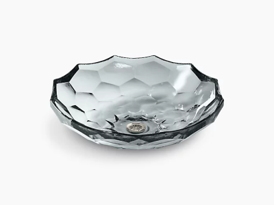 The Briolette glass sink displays a uniquely faceted shape inspired by the precisely cut surfaces of precious stone. Gently curved walls highlight the natural textural qualities of glass and create a striking reflective effect. This sink sits on top of the counter as a brilliant addition to your bath or powder room.
