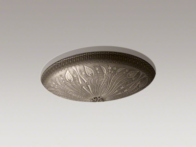 Kohler® 14297-MP1 Lilies Lore® Bathroom Sink, Oval Shape, 17-1/2 in W x 14-7/16 in D x 5-1/8 in H, Undermount Mounting, Cast Bronze, Medium Patina