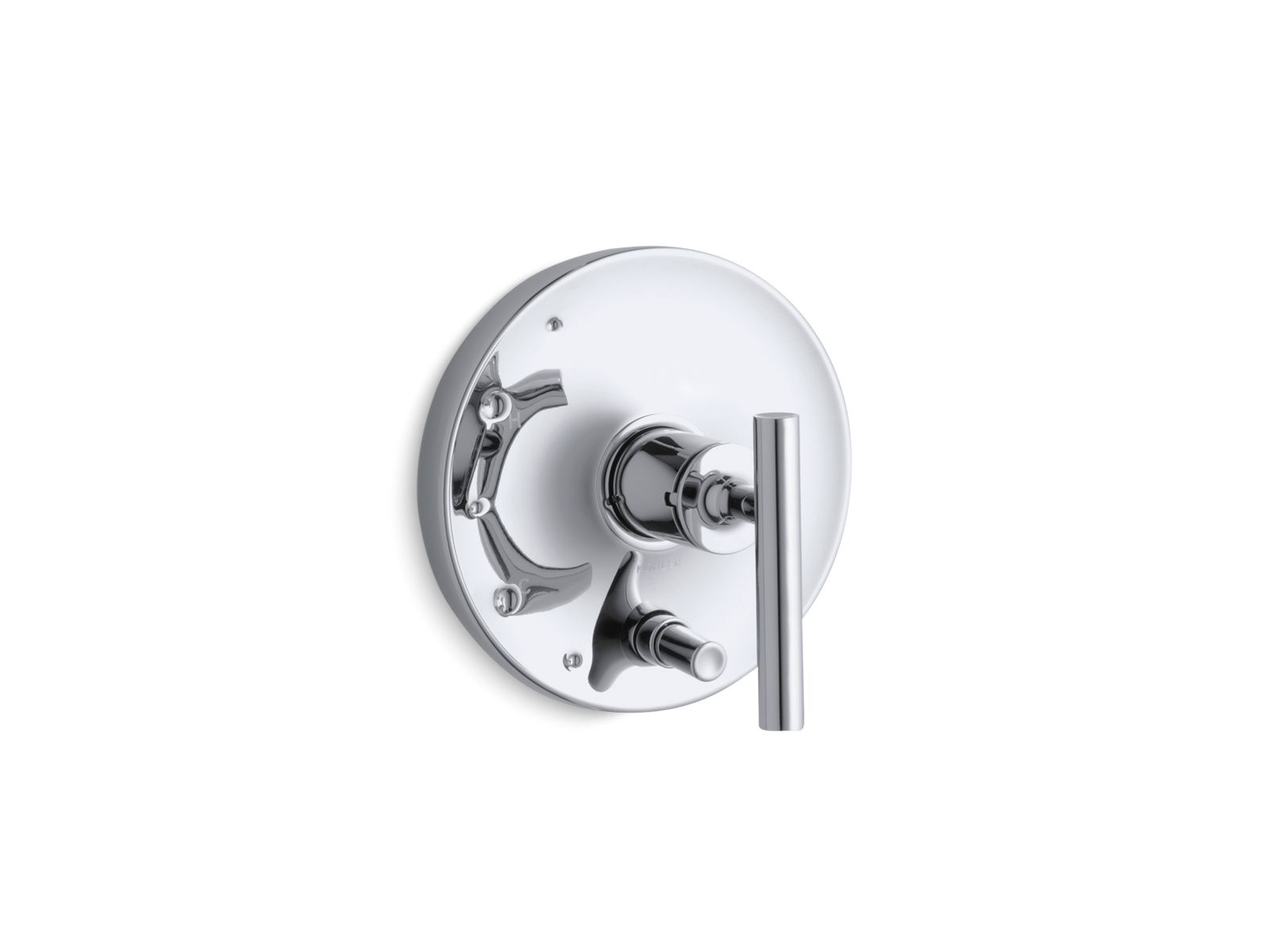 Kohler® Valve Trim, Purist® Rite-Temp®, Pushbutton Diverter Spout, 1 Handles, Lever, 6-1/2 in Dia Trim, Pressure Balanced Valve/Cartridge, Hand Shower Yes/No: No, Wall Mount, Brass, Polished Chrome