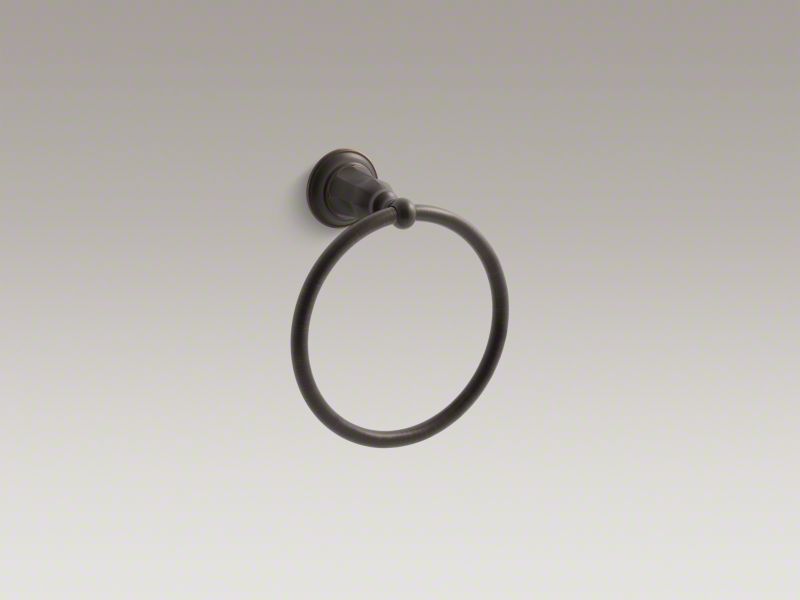 Kelston accessories feature a unique blend of traditional and modern design elements that add fresh sophistication and warm elegance to the bathroom. This stylish towel ring complements faucets and other fixtures in the Kelston Collection.