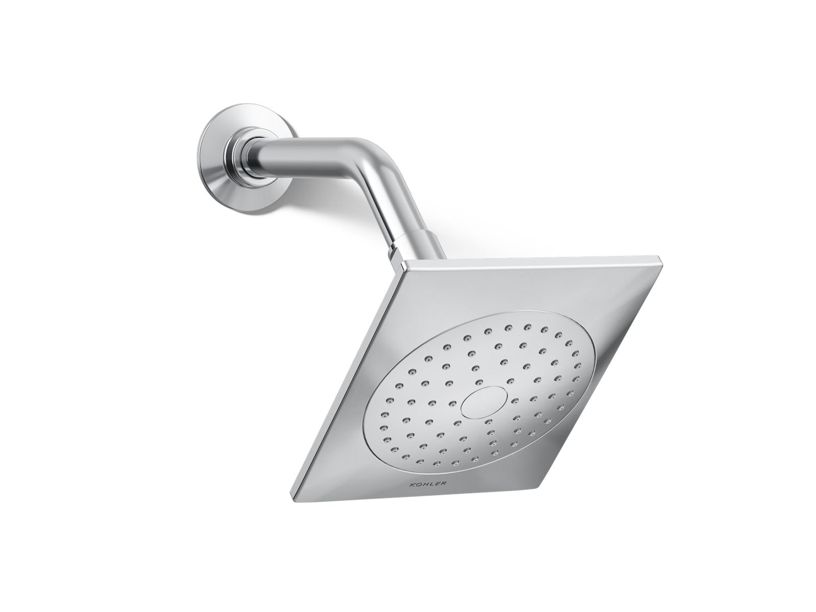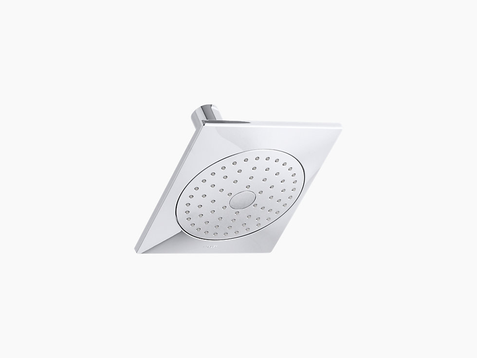 Kohler® Single-Function Shower Head, Loure®, 2.5 gpm Minimum Flow Rate, 1/2 in NPT, Squared, Wall Mount, 5-1/4 in Overall Length, 6-5/16 in Overall Width, 3-7/8 in Overall Height, Brass, Polished Chrome