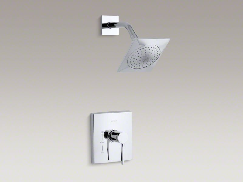 A definitive expression of contemporary design, the Stance faucet collection asserts itself with strong architectural lines and angles. This shower trim includes a showerhead and single lever handle--each featuring Stance's refined edges and bold shapes. Pair this trim with a Rite-Temp(R) pressure-balancing valve, which maintains your desired water temperature during pressure fluctuations.