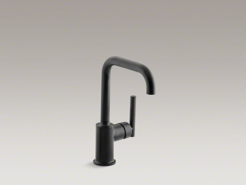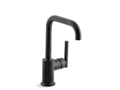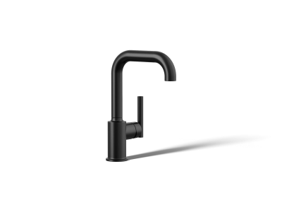 Designed to accommodate an extra-thick counter, this KOHLER® Purist bar sink faucet combines a strong architectural form and simple-to-use features. The high-arch swing deck-mount bar sink faucet spout maneuvers easily around large cookware, while the side lever handle controls temperature and flow. This faucet is ideal for an entertainment area, kitchen island, or prep sink.