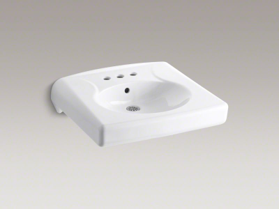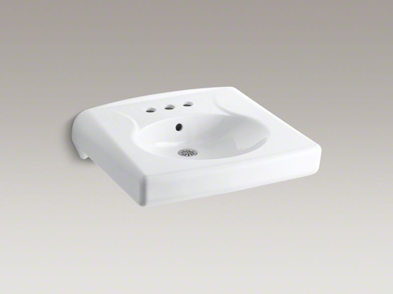 Kohler®, 1997-4-0, Bathroom Sink With Overflow Drain, Brenham™ Collection, Oval Shape, 14-3/8 in L x 12-5/16 in W Bowl, 1-3/4 in Drain Opening, 3 Faucet Holes, 4 in Faucet Hole Spacing, 1 Basins, 21-15/16 in W x 19-3/4 in D Overall, Wall Mounting, Vitreous China, White, ADA Compliance: Yes