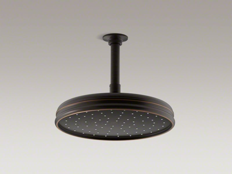 Kohler® Raincan Shower Head, Traditional, 2.5 gpm, 1/2 in NPT Connection, Round Shape, Spray Pattern: Rain, Ceiling Mounting, 10-7/16 in Overall Length, 10-7/16 in Overall Width, 3-3/4 in Overall Height, Brass, Oil Rubbed Bronze