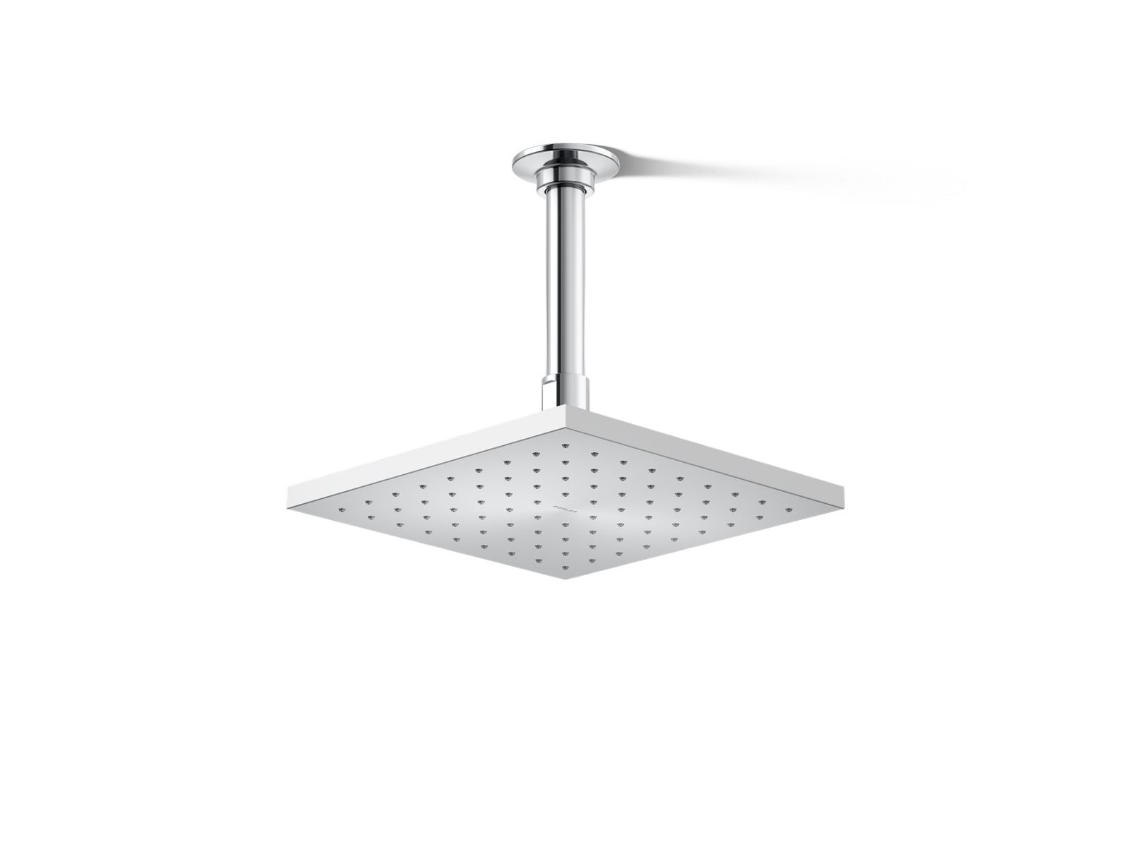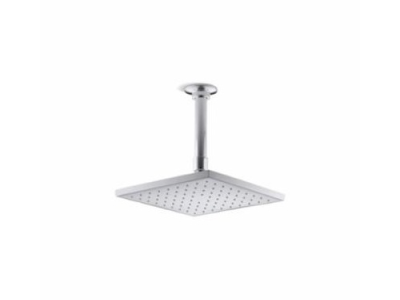 Enjoy a shower that simulates the soaking deluge of a warm summer downpour. This KOHLER® contemporary-style square ceiling-mount/wall-mount rainhead features innovative Katalyst® air-induction technology, which efficiently mixes air and water to produce large water droplets and deliver a powerful, thoroughly drenching overhead shower experience. Its clean design and durable finish coordinate with many other KOHLER® faucets and accessories.