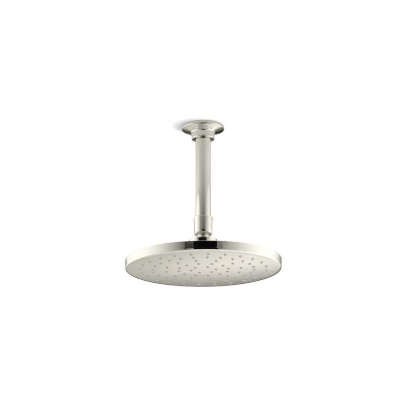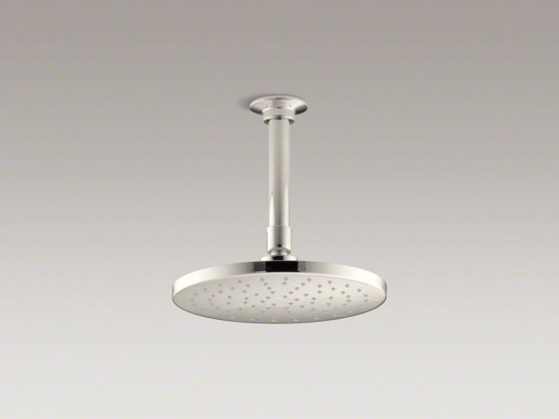 Kohler® Rainhead, Contemporary, 2.5 gpm, 1/2 in Connection, Round Shape, Number of Sprays: 1, Spray Pattern: Rain, Ceiling Mounting, 8 in Dia x 2-3/4 in H Head, Brass, Vibrant® Polished Nickel