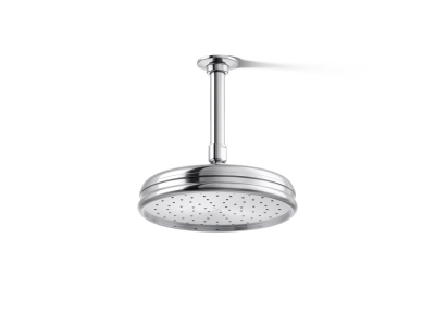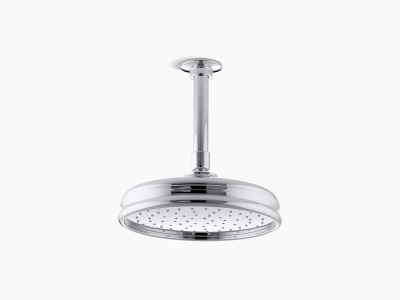 Enjoy a shower that simulates the soaking deluge of a warm summer downpour. This traditional-style KOHLER® round ceiling-mount/wall-mount rainhead features innovative Katalyst® air-induction technology, which efficiently mixes air and water to produce large water droplets and deliver a powerful, thoroughly drenching overhead shower experience. Its clean design and durable finish coordinate with many other KOHLER® faucets and accessories.