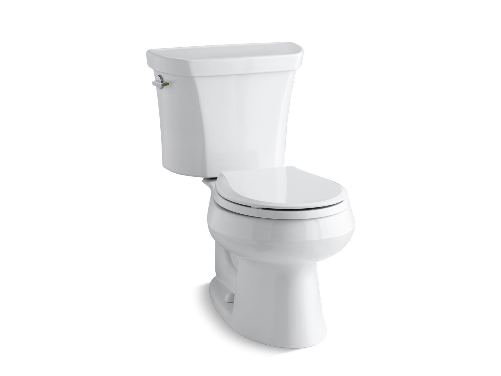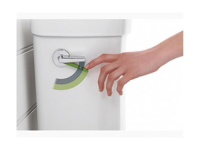 This KOHLER® Wellworth dual-flush toilet combines water savings with powerful flush performance. An innovative two-tone flush lever offers the choice of 1.1 or 1.6 gallons per flush; the dual-flush lever is located on the side of the tank like a traditional two-piece round-front toilet, leaving the top free for storage. The high-efficiency 1.1-gallon flush reduces water use by more than 30 percent over the 1.6-gallon mode, which adds up to potential water savings of more than 4,000 gallons per toilet, per year.