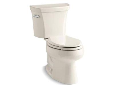 Kohler® Toilet, 2-Piece, Wellworth® Collection, 1.28 gpf Flush, Elongated Bowl, 14-1/2 in Rim Height, 12 in Rough-In, 2-1/8 in Trapway, Floor Mounting, Class Five® Flushing System, 3-1/4 in Flush Valve, 10-1/8 in W Bowl, 18 in W x 29-1/4 in D x 30 in H Overall, Vitreous China, Almond