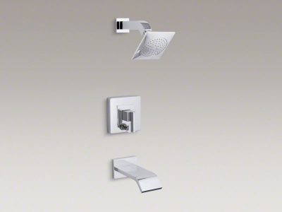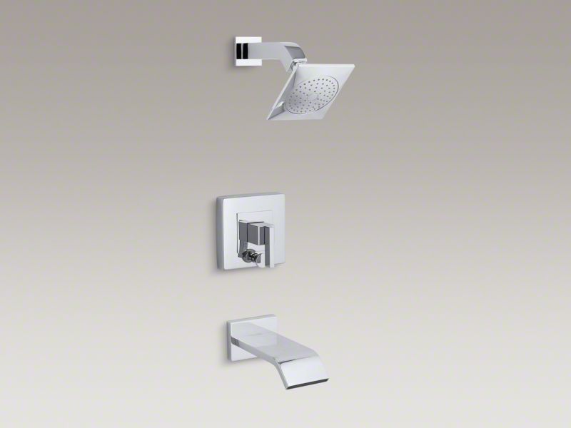 Combining a sleek profile with enhanced utility, Loure introduces a classically modern look to your bath decor. This bath and shower faucet trim includes a lever handle with push-button diverter as well as a single-function showerhead. Pair this trim with a Rite-temp® pressure-balancing valve with push-button diverter, which maintains your desired water temperature during pressure fluctuations.