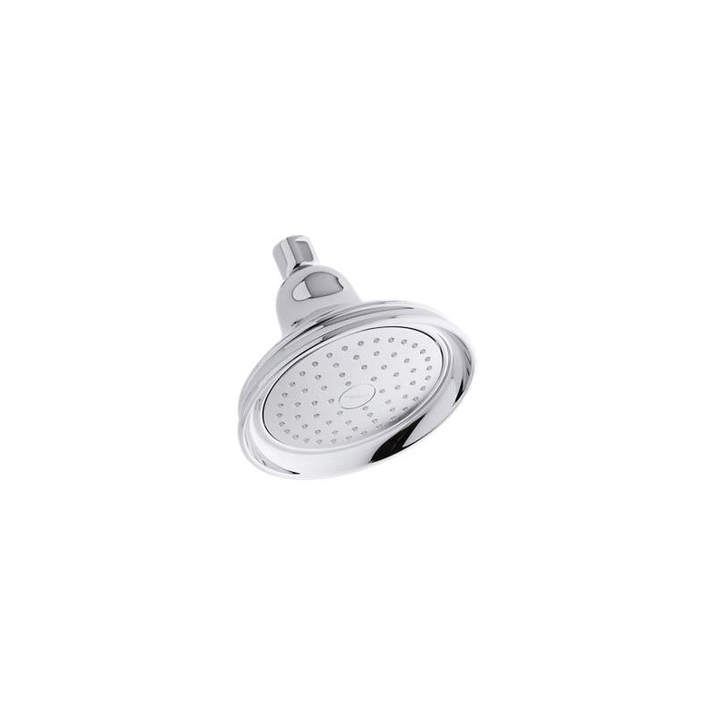 Kohler® Showerhead, Single Function, Bancroft® Collection, 2.5 gpm Minimum, 1/2 in NPT Connection, Round Shape, 1 Sprays, Spray Pattern: Full Body/Katalyst Shower, Wall Mounting, 5-15/16 in Dia x 4-13/16 in H Head, Brass, Polished Chrome