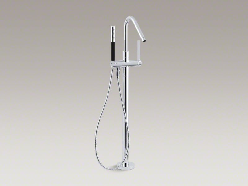 Designed for freestanding baths, the Stillness bath filler brings a subtle, minimalist look to modern bathrooms. This filler features a tall arching spout for a clean, striking style and controlled water flow. A lever handle provides easy control over water temperature and an attached handshower offers added convenience for bathing.