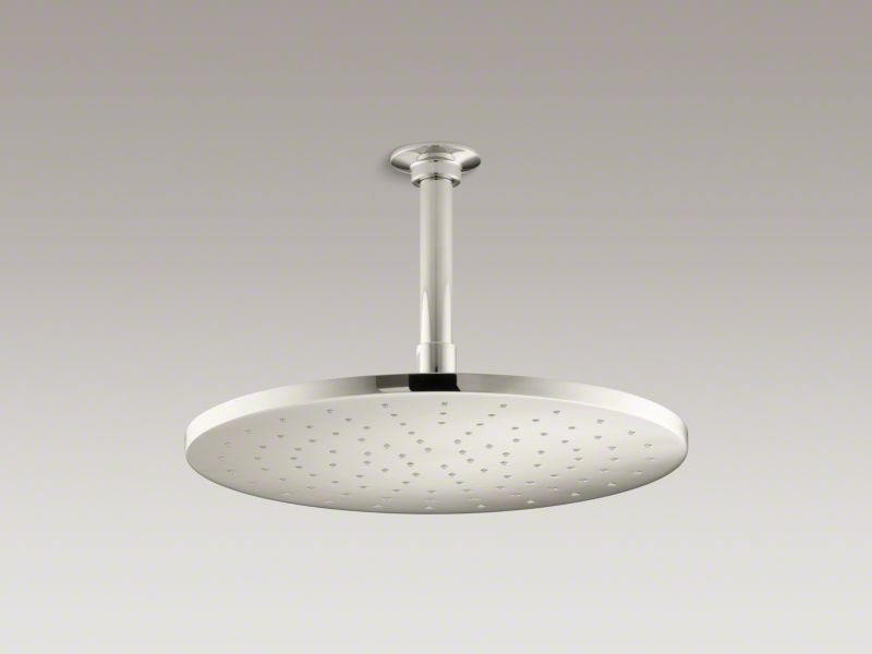 Enjoy a shower that simulates the soaking deluge of a warm summer downpour. This KOHLER® contemporary-style round ceiling-mount/wall-mount rainhead features innovative Katalyst® air-induction technology, which efficiently mixes air and water to produce large water droplets and deliver a powerful, thoroughly drenching overhead shower experience. Its clean design and durable finish coordinate with many other KOHLER® faucets and accessories.