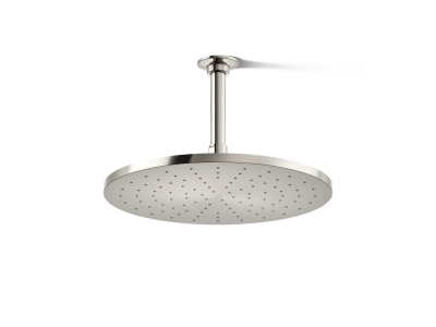Kohler® Raincan Shower Head, Contemporary, 2.5 gpm, 1/2 in NPT Connection, Round Shape, Spray Pattern: Rain, Ceiling Mounting, 12 in Overall Length, 12 in Overall Width, 2-3/4 in Overall Height, Brass, Vibrant® Polished Nickel