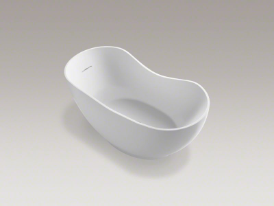 With an organic oval shape inspired by clay pottery, the KOHLER® Abrazo 66" x 31-1/2" oval freestanding bath makes a striking focal point for your contemporary bathroom. An integral slotted overflow allows for the deepest possible water level. KOHLER® Lithocast® cast resin material has the attractive finish of smooth stone but feels warm to the touch and is easy to clean.